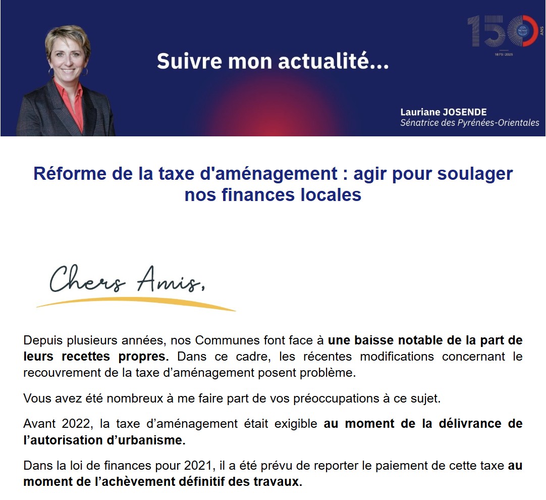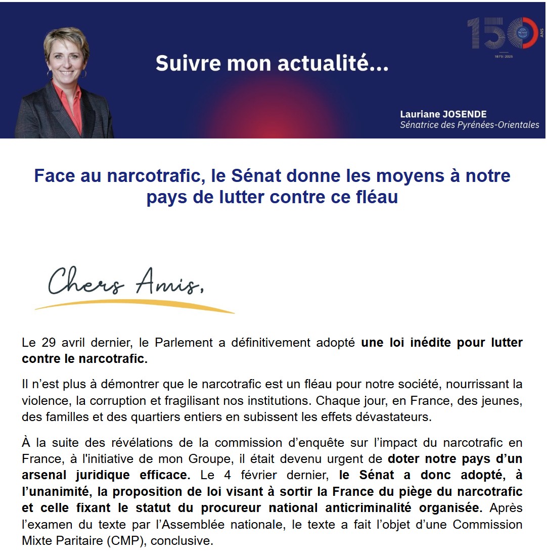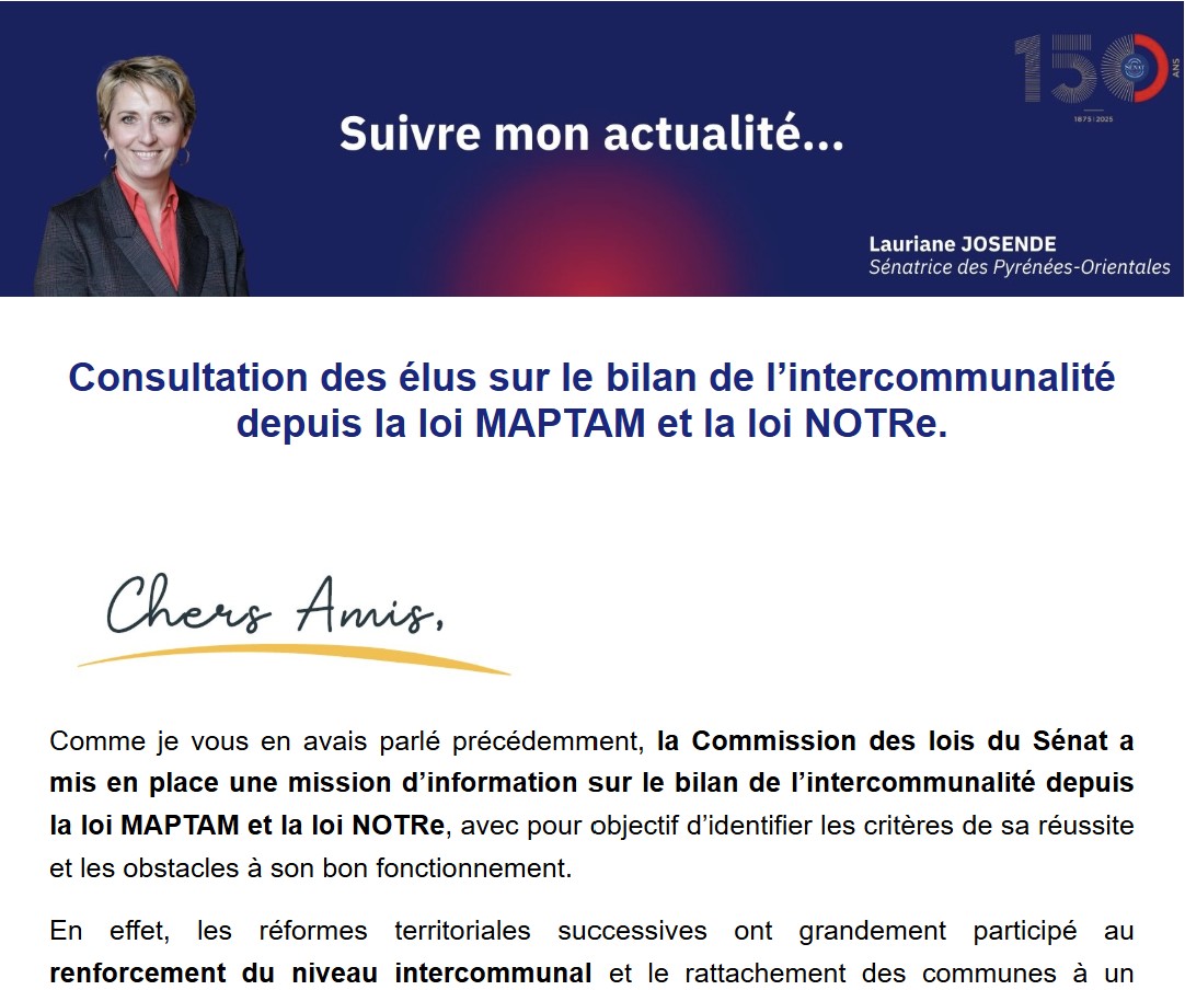 Régulièrement, je vous informe des travaux en cours du Sénat et de mon action sur les problématiques majeures de notre Département.